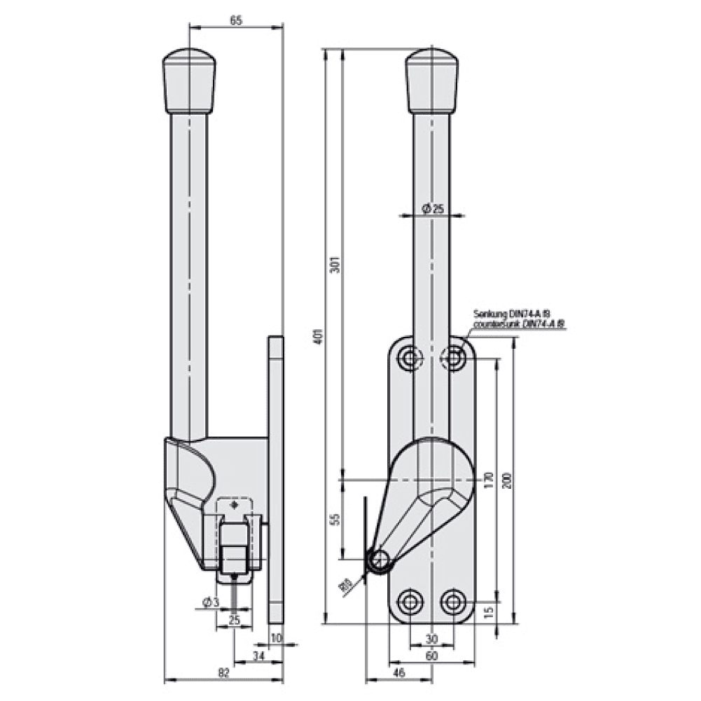 Maneta heavy duty inoxidable solida para puerta frigorifica de abatir derecha / izquierda